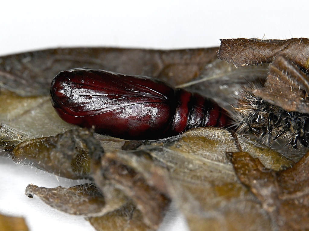Scarlet Tiger moth pupa and cocoon Callimorpha dominula