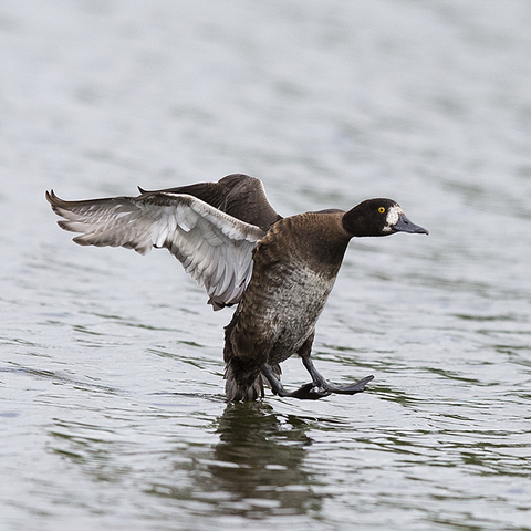 A female Tufted Duck lands