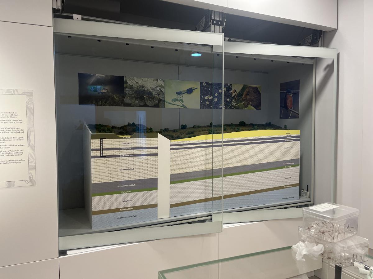 Among the highly-praised exhibits is a beautifully modeled section of the River Ver (designed by Lee Wood and sponsored by Affinity Water) showing the underlying geological strata and associated chalk stream species. A compelling video contrasts species that have become scarce or 'Herts-extinct ' in recent years, with those that are new or rapidly-spreading.